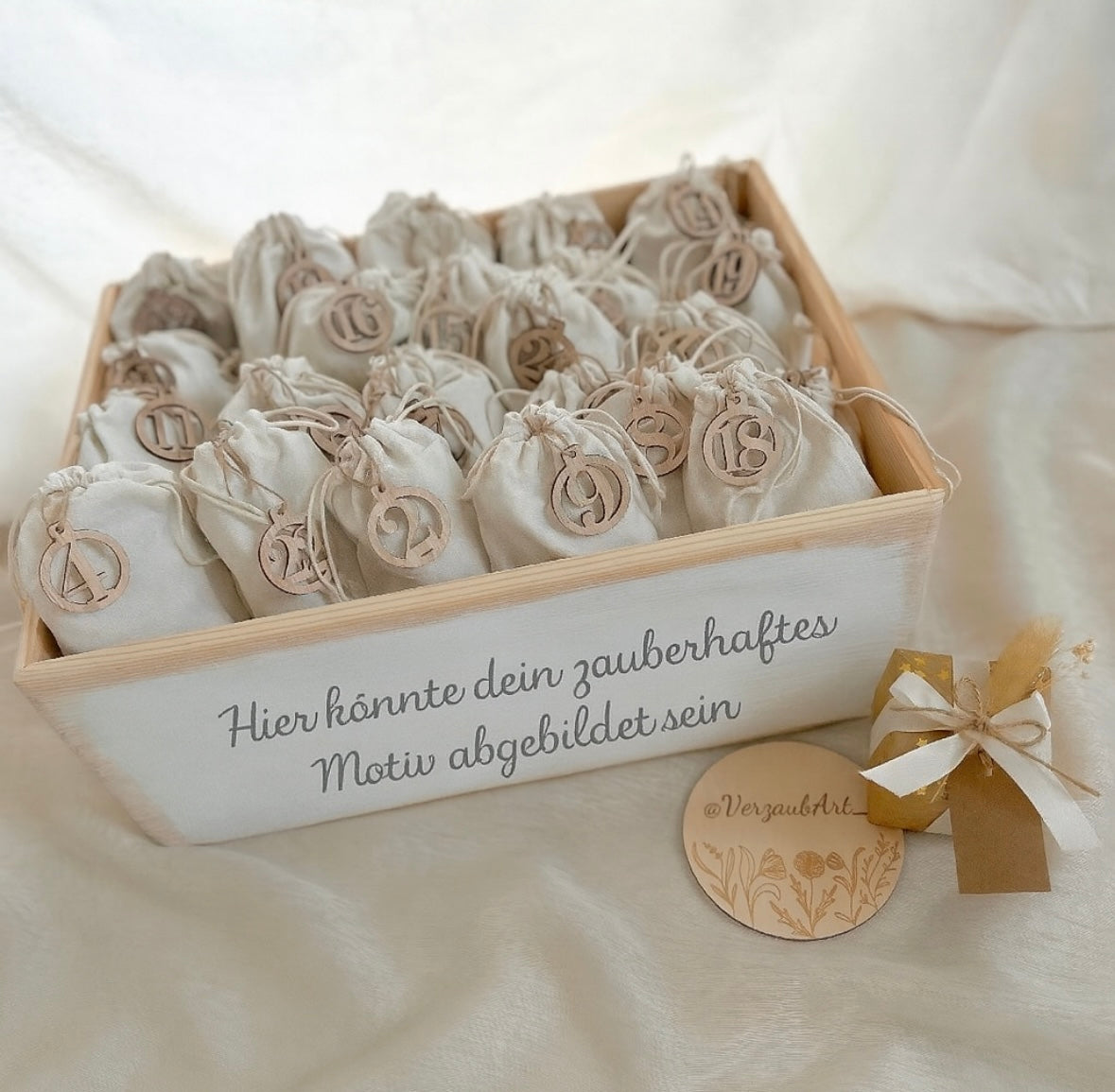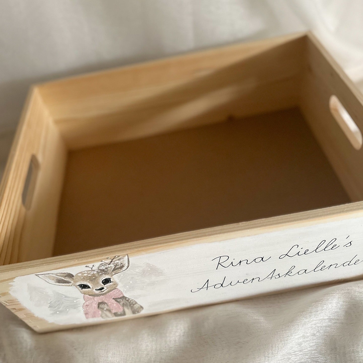 Diese Adventskalender-Kiste aus hochwertigem Holz ist ein einzigartiger Blickfang in der Weihnachtszeit. Mit zauberhaften Motiven und liebevollen Details bringt sie Kinderaugen jeden Tag im Advent zum Strahlen.