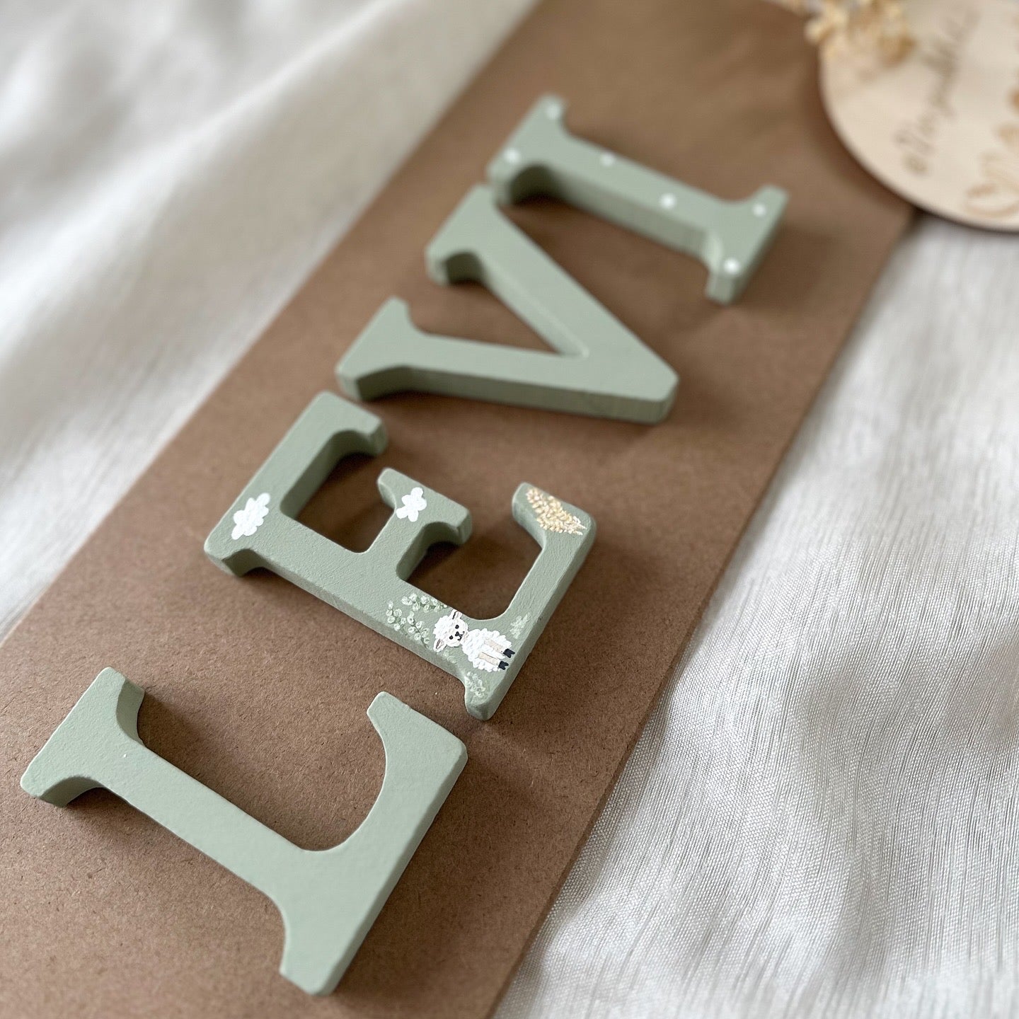 Unsere zauberhaften Buchstaben machen jeden Namen zu etwas ganz Besonderem. Perfekt für die Kinderzimmertüre, die Wand oder jeden Ort, der einen persönlichen Touch verdient hat!